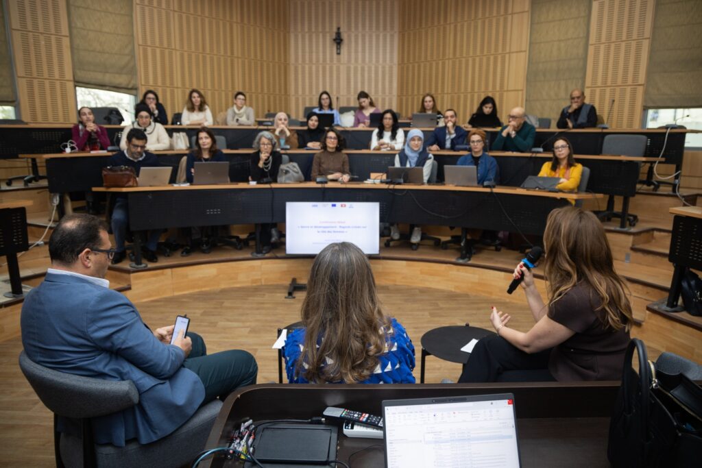 Aux côtés de Leila Baghdadi (Banque mondiale), Pr Habib Zitouna (Association des économistes tunisiens, ASECTU), Anissa Hanifa et Nessrine Abbassi, les discussions ont permis de mettre en lumière les obstacles persistants freinant l’accès des femmes au marché du travail : normes sociales, contraintes de mobilité, concentration sectorielle de l’emploi, manque de données statistiques genrées, ou encore certaines pratiques des employeurs.
